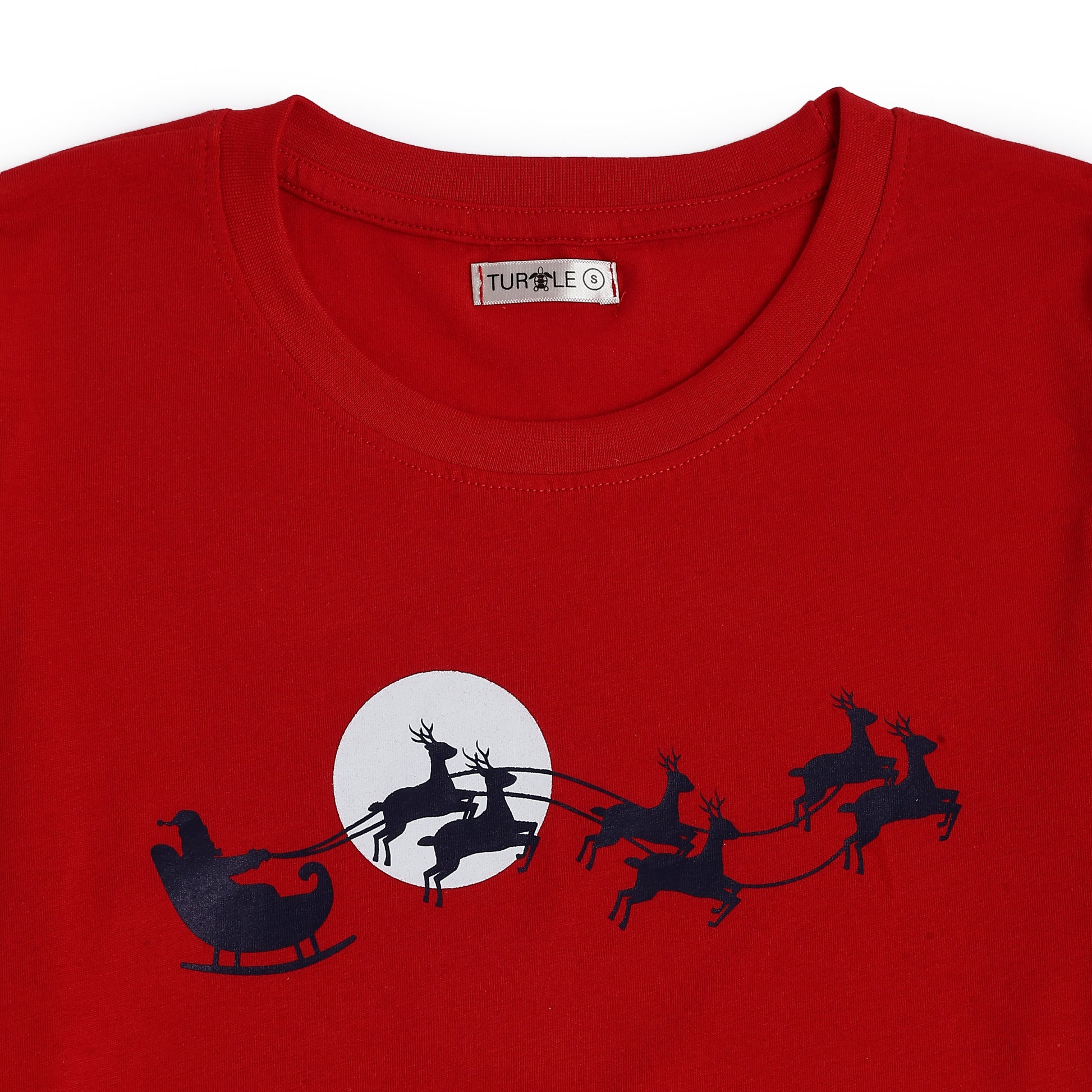 Celebrate the holiday season in comfort with the Turtle Merry & Snug Christmas Pyjama Set. Designed in 100% cotton single jersey fabric, this set includes a red long sleeve top with a Santa sleigh print and navy trousers with a festive reindeer fair-isle pattern. The breathable cotton fabric and elasticated waistband ensure comfort and durability, making it perfect for sleeping or lounging. A thoughtful Christmas gift and an ideal choice for cosy winter nights.
