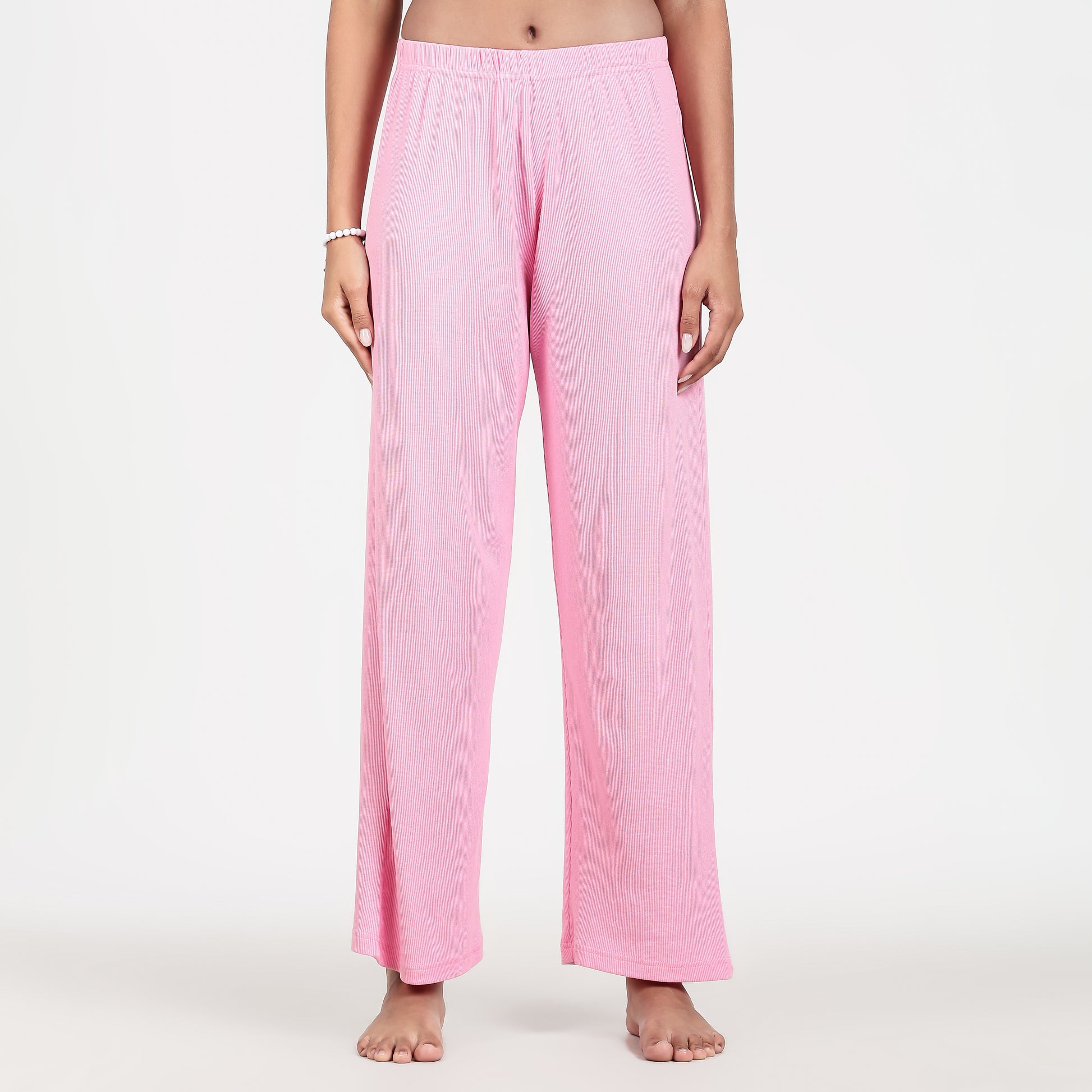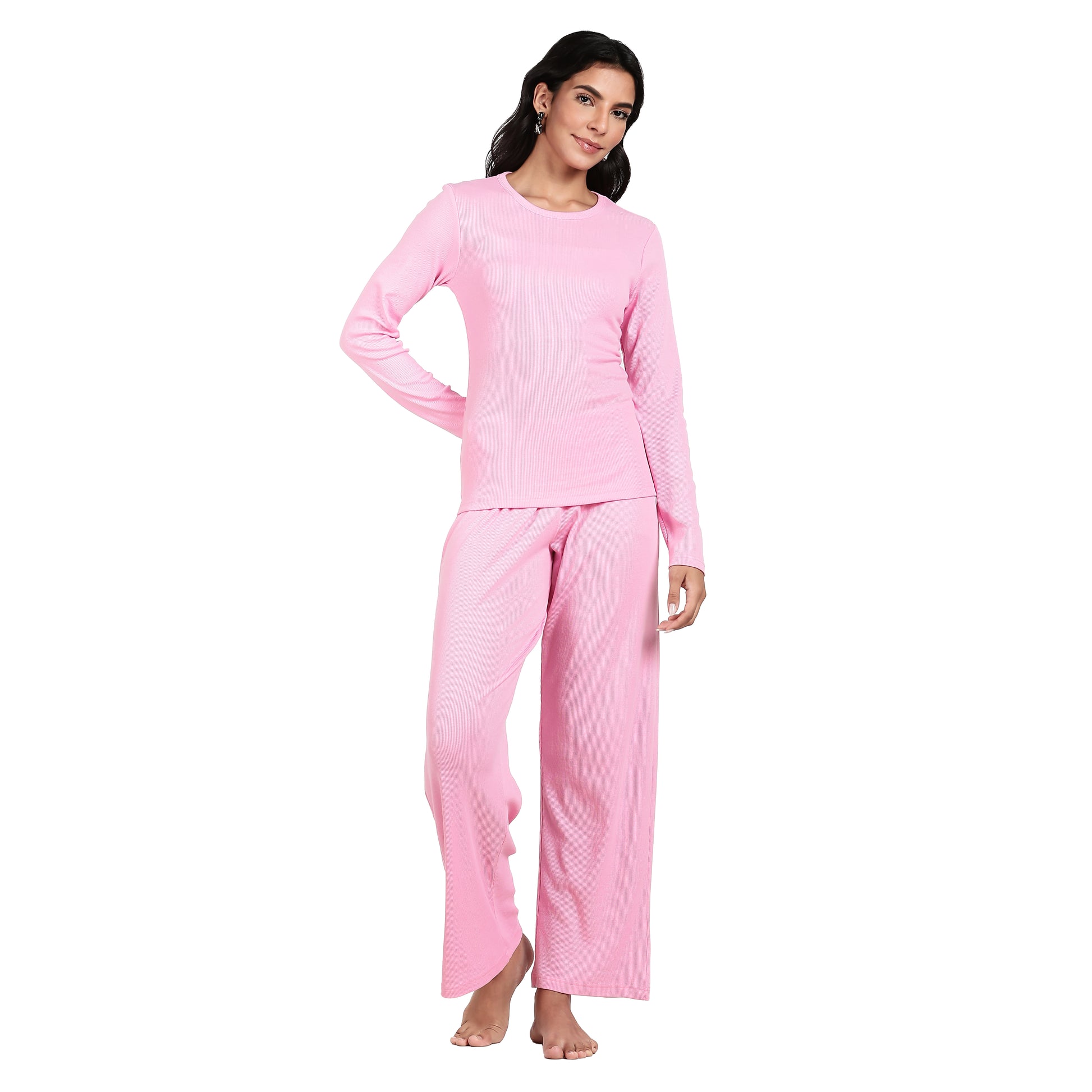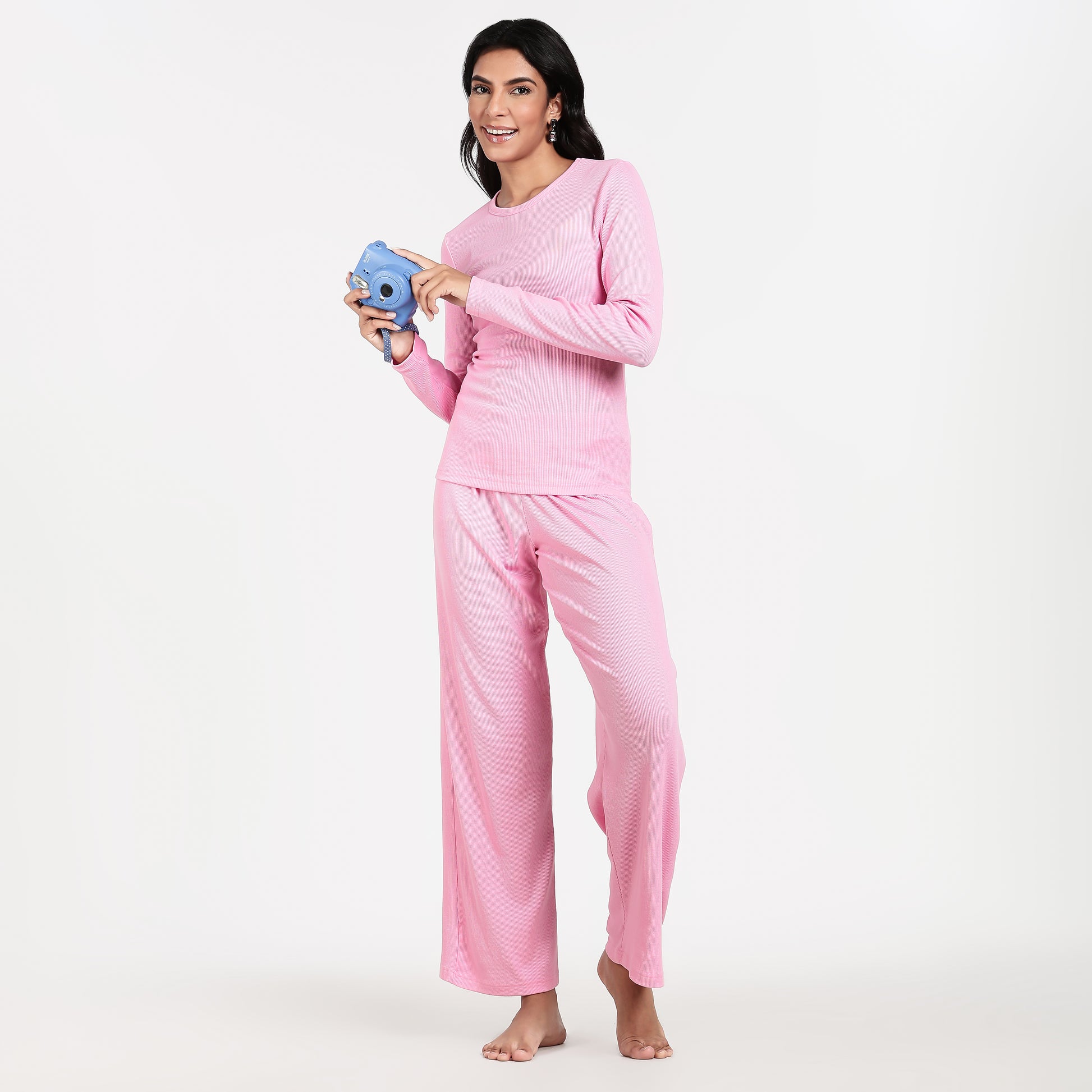 Complete 2-Piece Set: Includes a ribbed long sleeve top with matching wide-leg trousers – perfect for lounging, sleeping, or casual wear.