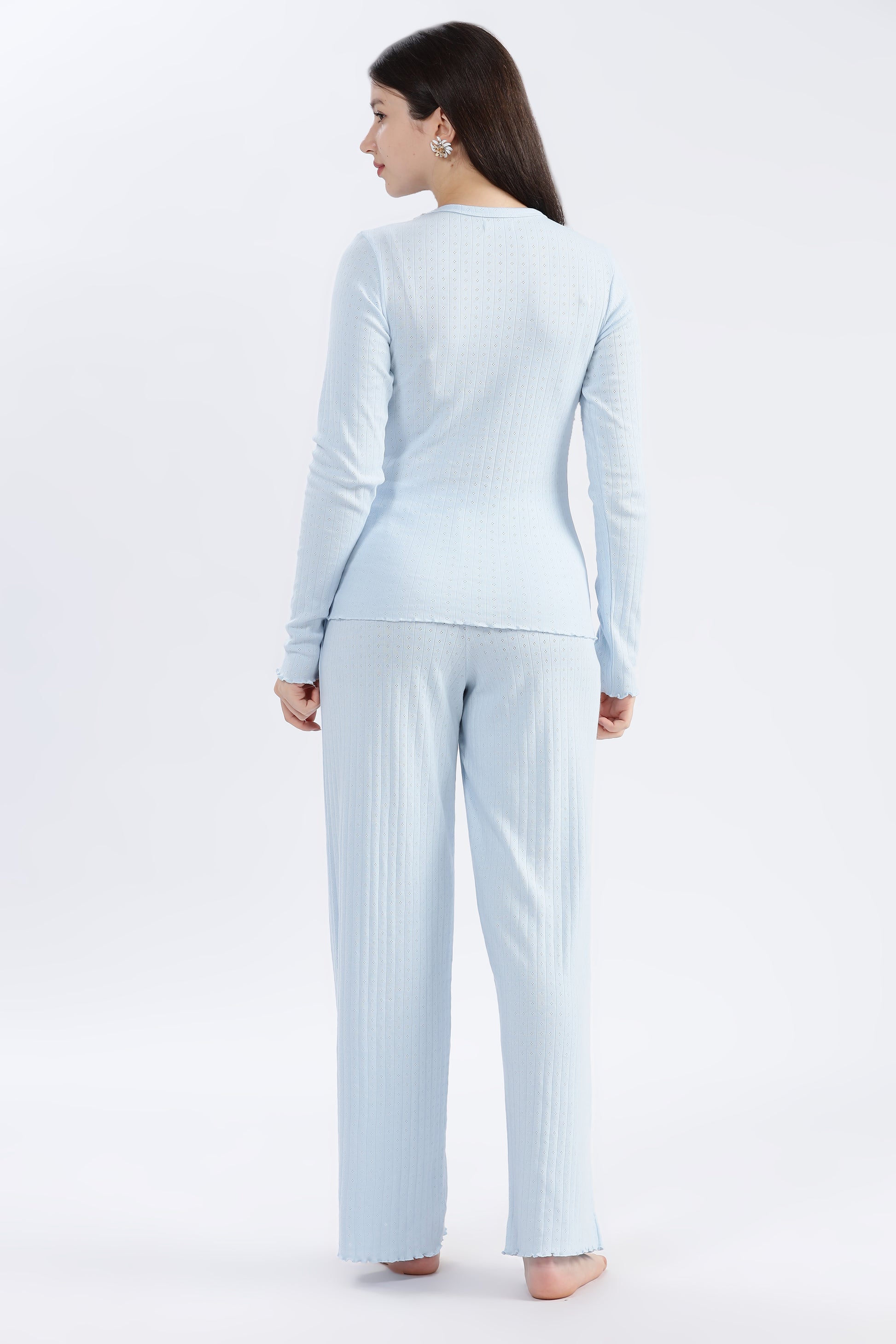 Soft Pointelle Knit Fabric – Crafted from breathable and lightweight pointelle fabric, offering all-day comfort and a premium lounge feel.
