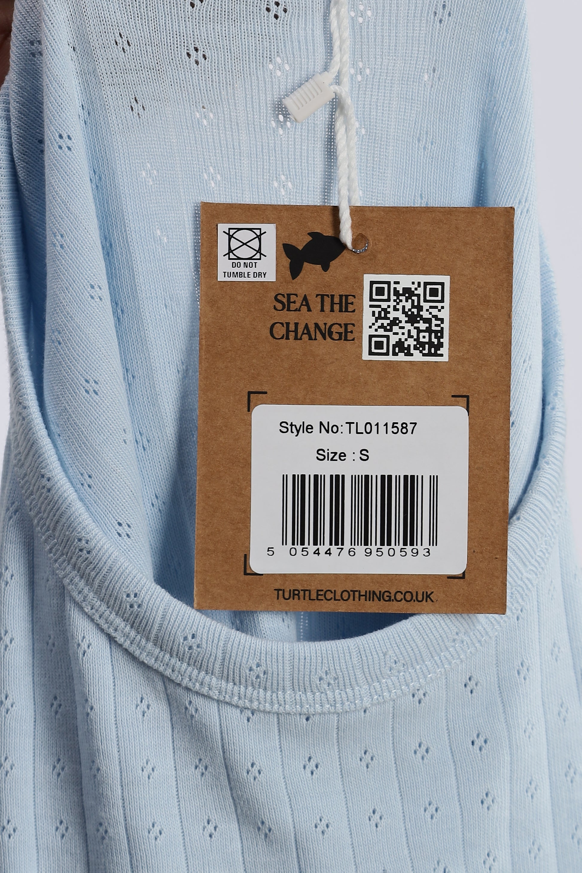 Stay cool and comfortable with this Women’s Pointelle Loungewear Short Set, designed for relaxed elegance during warmer days. The set features a short sleeve crew neck top paired with matching elasticated shorts, crafted in a blue shade from lightweight pointelle knit fabric.